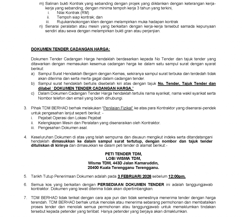 TENDER NO: TDMB 02/26 – ‘CONSULTANT FOR THE RECTIFICATION WORKS OF SUN LOUVERS’ DI KMI KUALA TERENGGANU MEDICAL CENTRE (KMIKT)