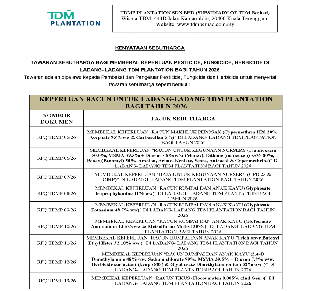 BORANG SEBUT HARGA RACUN RFQ TDMP 05.26 SEHINGGA RFQ TDMP 13.26