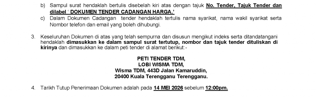 TENDER NO: TDMB 04/26 – CADANGAN KERJA-KERJA PENGUBAHSUAIAN BAGI STRUKTUR TAMBAHAN, KLINIK DAN KERJA-KERJA BERKAITAN DI KMI KUALA TERENGGANU MEDICAL CENTRE